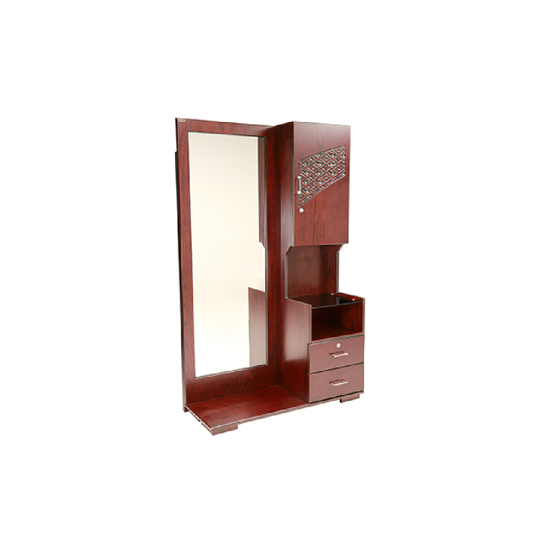 It’s anatomy description are simple mirror frame with design, outside 3 drawer 1 ornaments box, right side box with palla & outside open area with sitter.