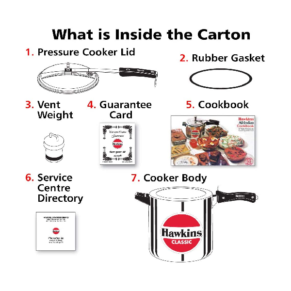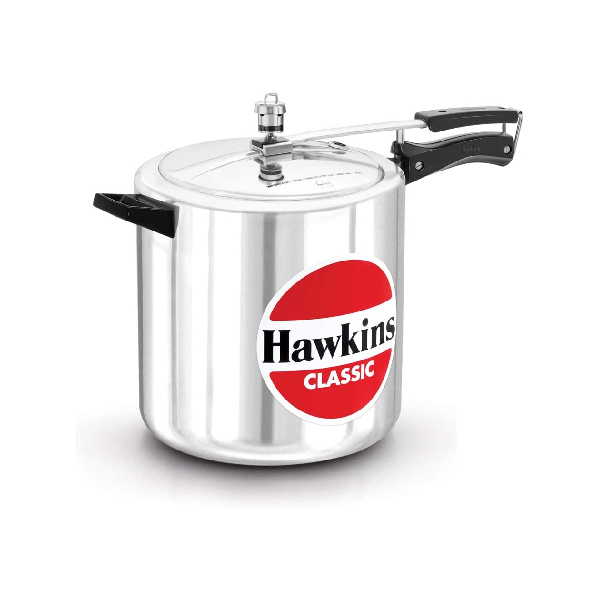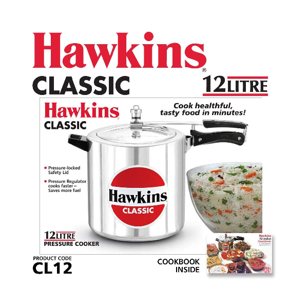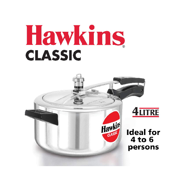 The classic is Hawkins’ largest-selling, most popular range of pressure cookers - perhaps because of its attractive combination of features, benefits and price. This range was the first to be introduced by Hawkins and has been kept up to date by numerous innovations and improvements over the years. The latest improvement, introduced in 2005, is a superior pressure regulating system that controls pressure to a narrower, more efficient range, reduces sprouting of frothy foods (such as dal) and is easier to insert and remove. The safety valve is located under the lid handle bar so that when it operates the steam is safely deflected downwards. The gasket has minimum exposure to steam inside the cooker, does not rub every time the product is opened and closed - so lasts longer. Suitable for gas, electric, ceramic and halogen cooktops. Stay-cool handles. Fixed sturdy pivot does not put pressure on the plastic handles as it is a part of the metal handle itself. Thus handles last longer. Recommended for use on gas stoves.