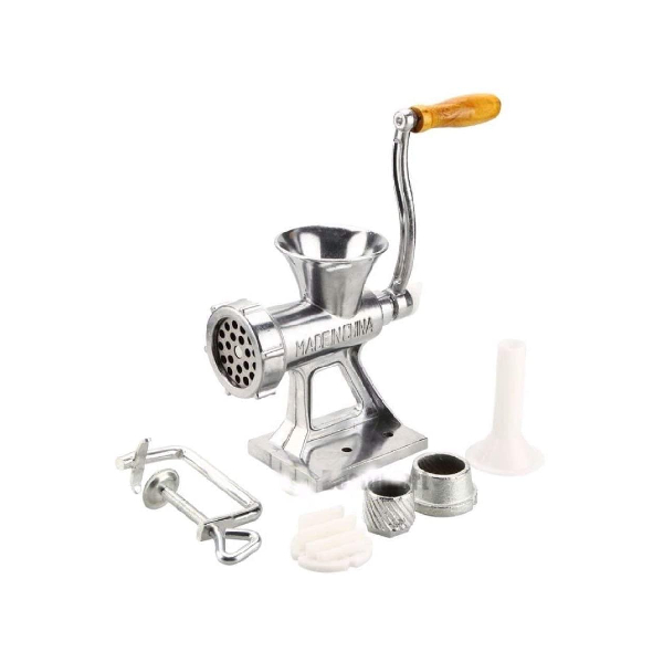 Made of heavy-duty cast ironTin electro-platedSanitary andattractiveSmooth finishingManual Meat mincerMeat processing: Hand operated coated tin meat mincer