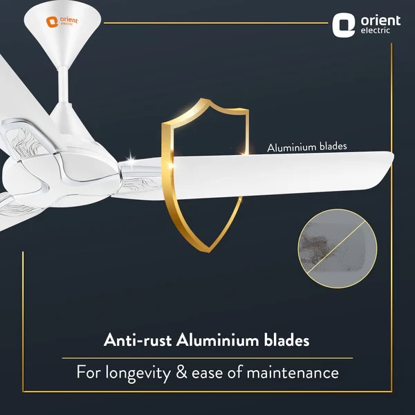 Fitted with three high-grade aluminium blades, this fan offers unmatched durability and a sleek, metallic look. The easy-to-clean surface ensures your fan looks as good as it performs, day after day.