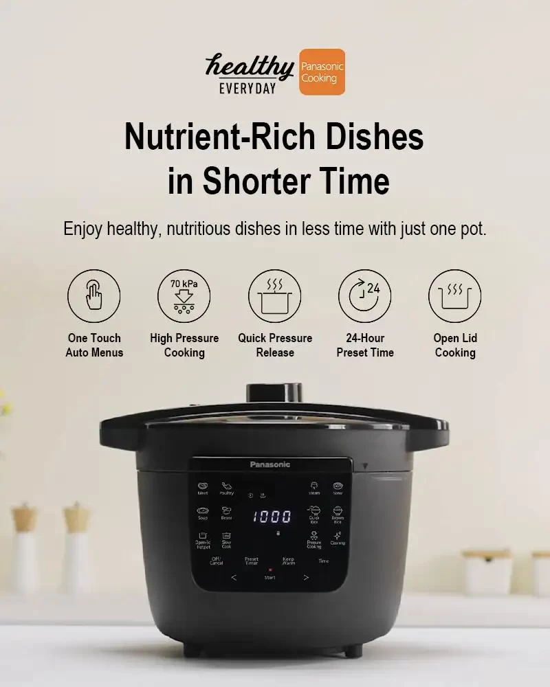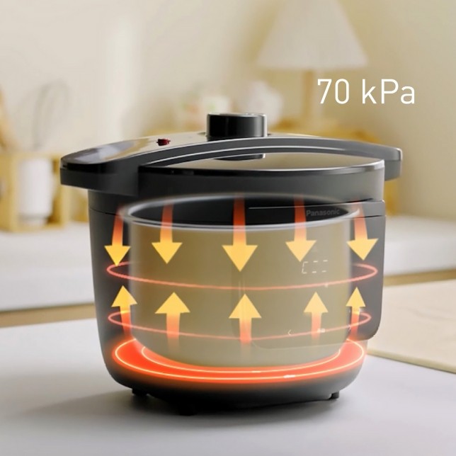 High-pressure cooking at up to 70 kPa achieves tender textures and richer tastes, ensuring quick cooking while extracting maximum flavours and nutrients.